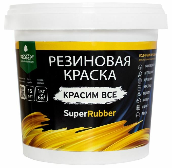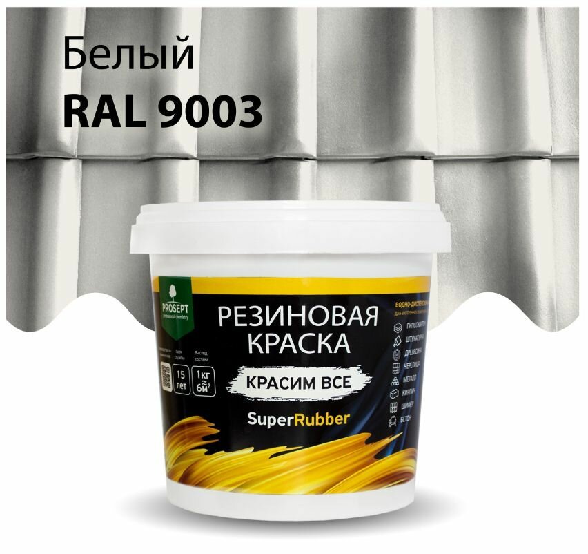 Краска резиновая Prosept SuperRubber (1кг) белый RAL9003