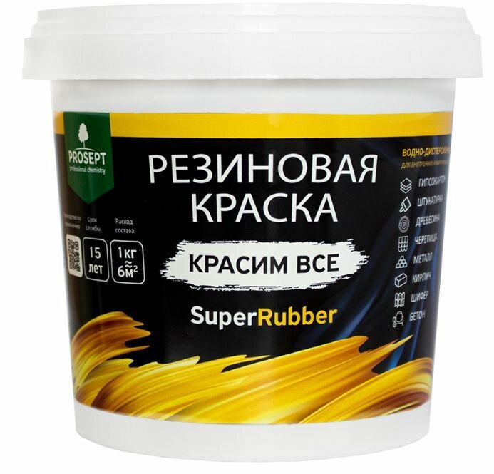 Краска резиновая Prosept SuperRubber (1кг) белый RAL9003