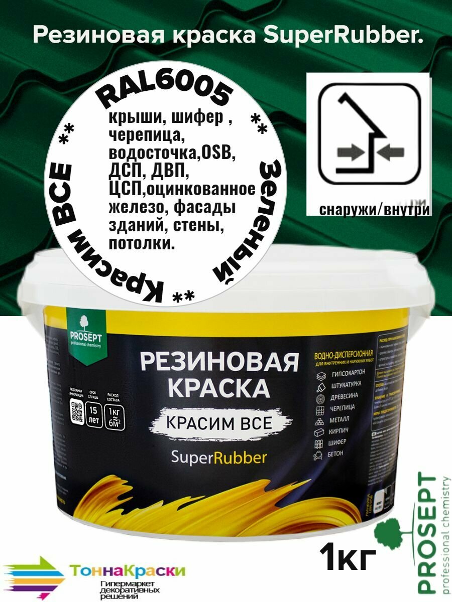 Краска резиновая Prosept SuperRubber (1кг) зеленый мох RAL6005