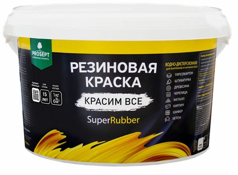 Краска резиновая Prosept SuperRubber (1кг) белый RAL9003