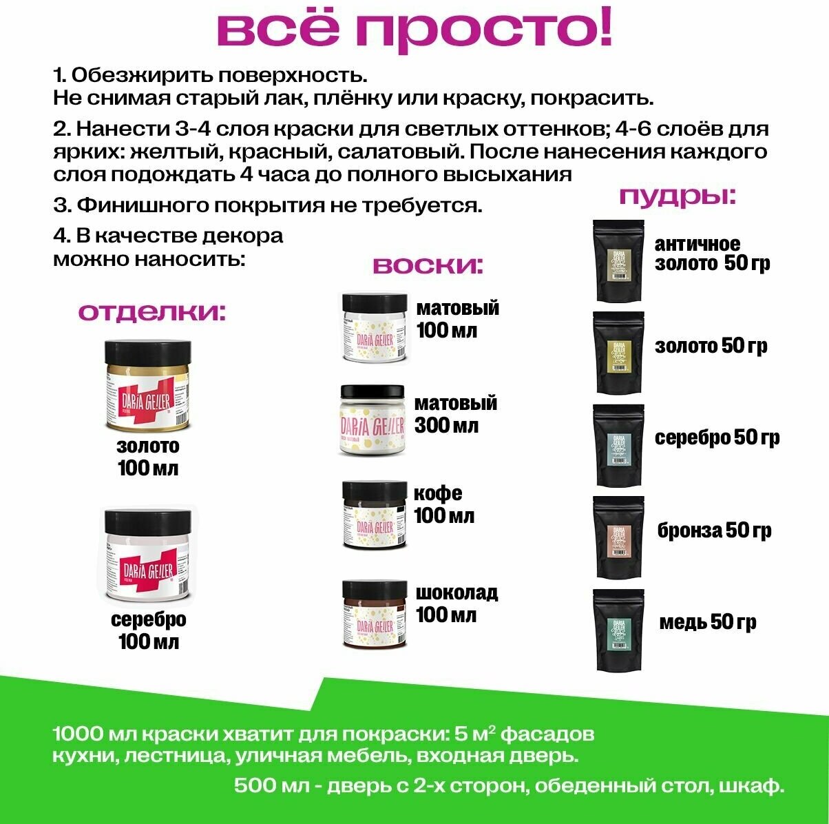 DARIA GEILER краска для мебели титановая Дарья Гейлер "Лён" 100 мл, водная, матовое покрытие, светло-серая интересное: