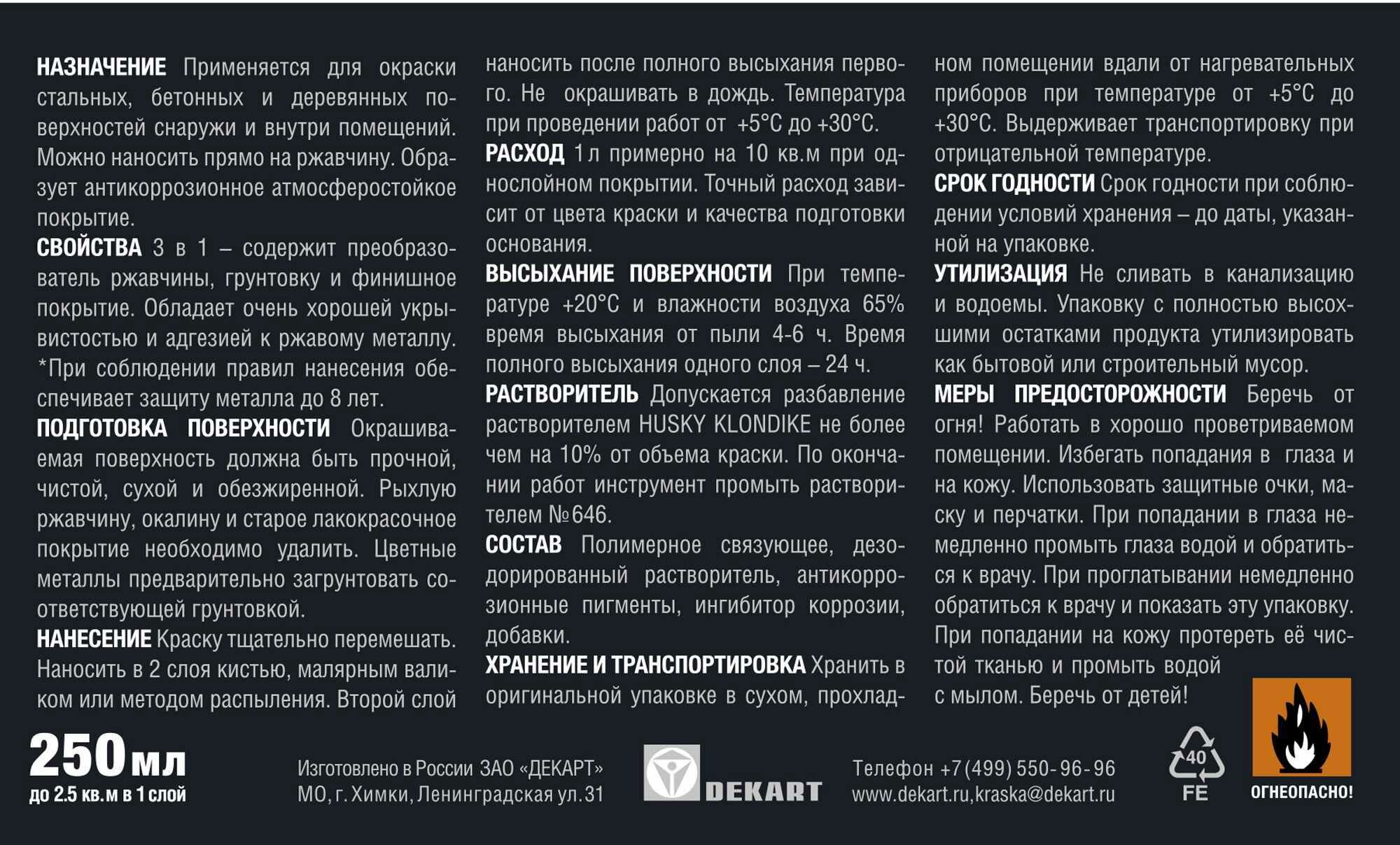 | Время высыхания | 24 часов |