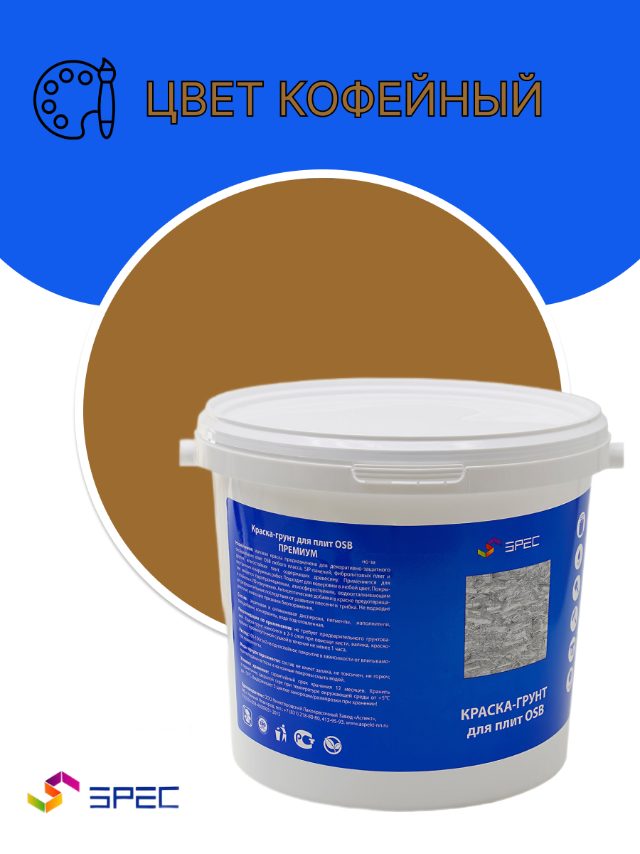 Краска-Грунт Премиум для OSB плит Акриловая SPEC/ ОСБ/ матовое покрытие/ 3 кг/ кофейный интересное: