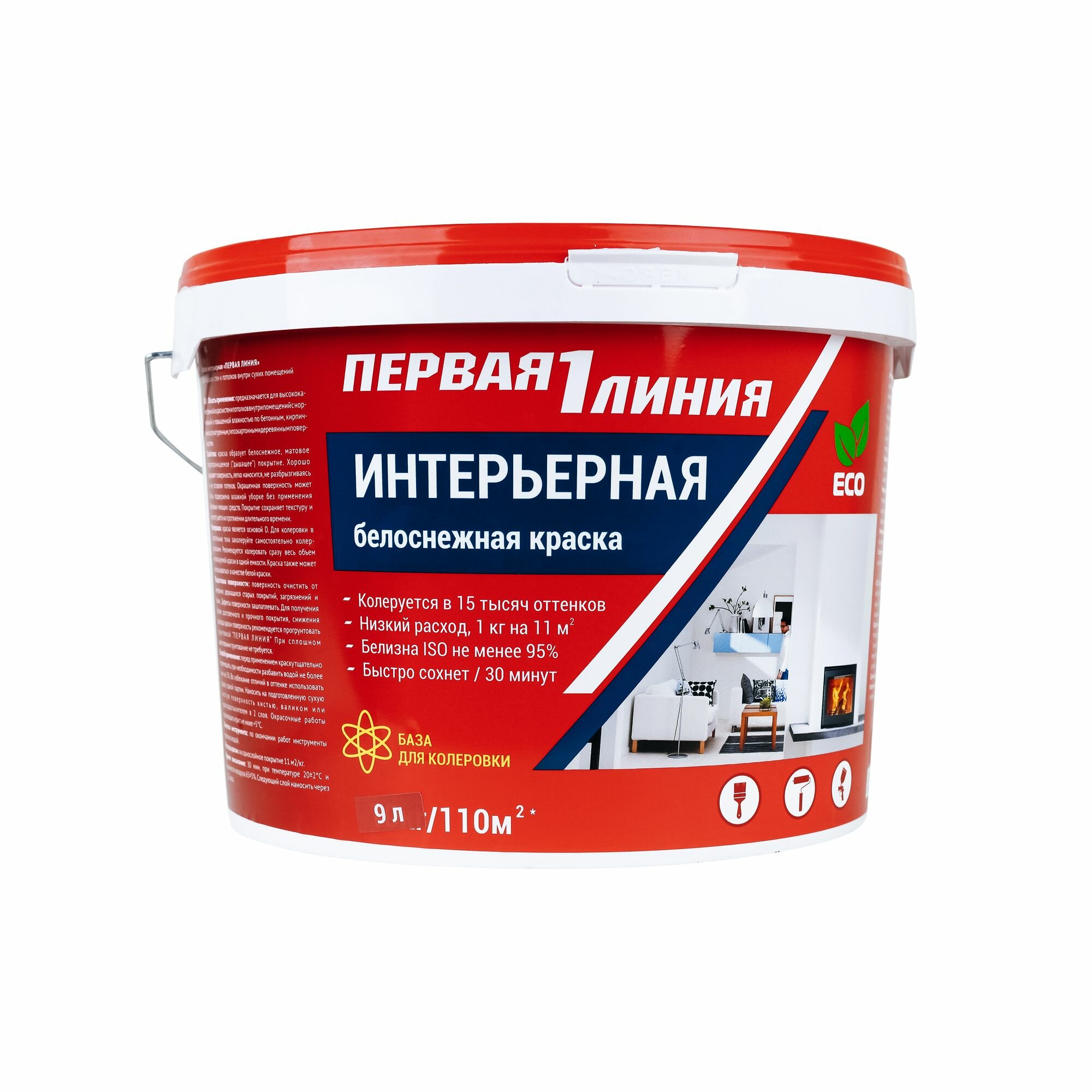 Краска для стен и потолков Первая линия интерьерная, быстросохнущая, акриловая, белоснежная 14 кг интересное: