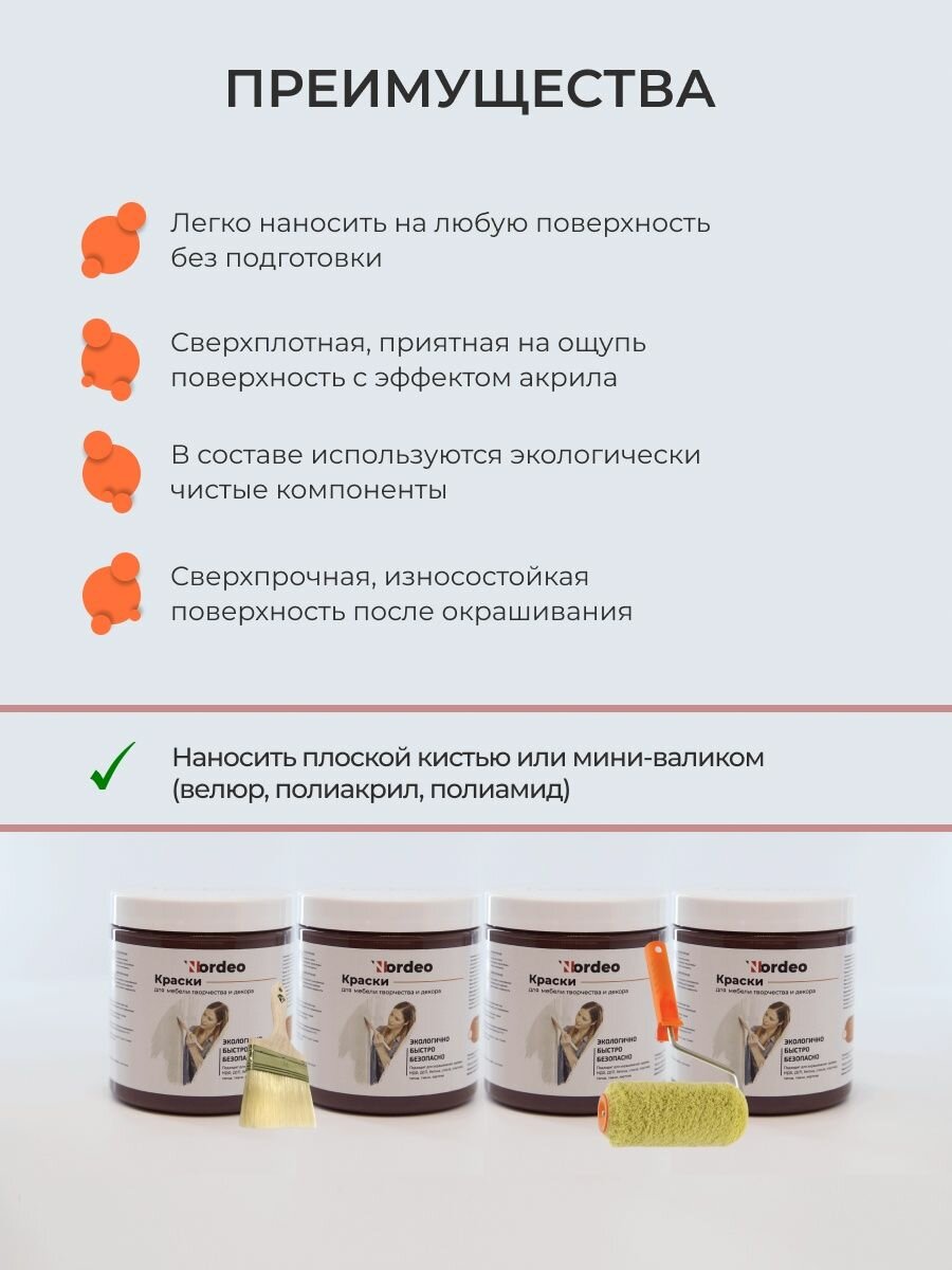 Краска для мебели, творчества и декора Nordeo, матовая, моющаяся, износостойкая, без запаха, 250 гр, цвет бисквитный