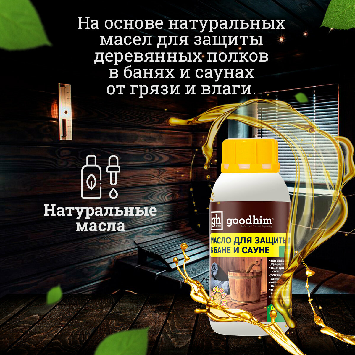 Масло натуральное для защиты полков в бане и сауне GOODHIM 210, 0,5 л 49594 интересное: