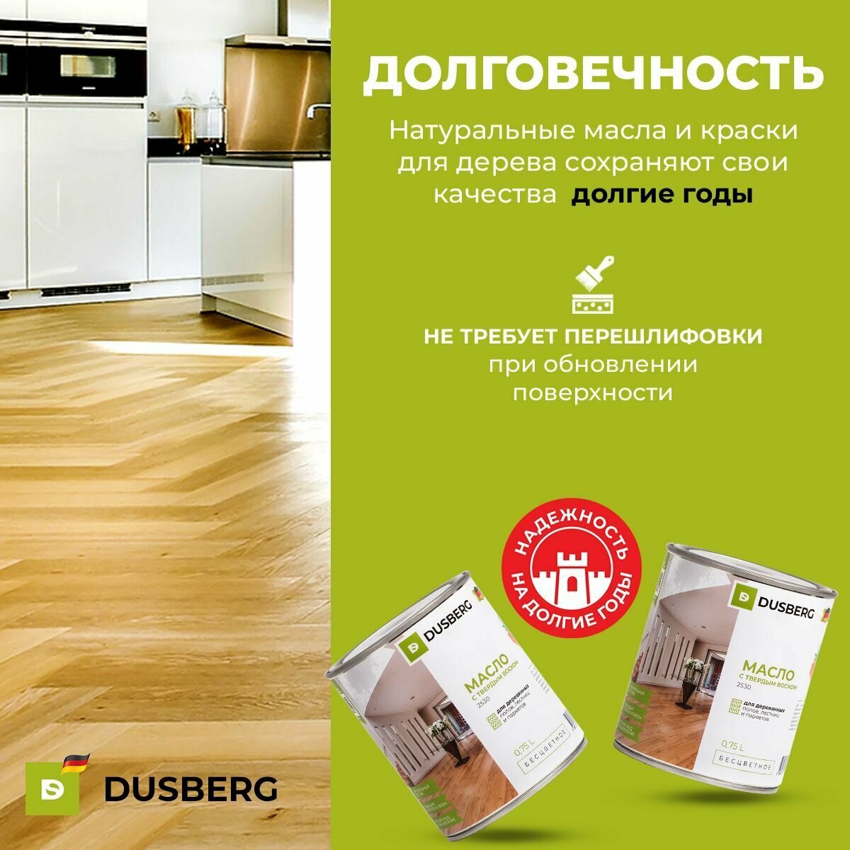 Масло с твердым воском для полов и лестниц Dusberg 2530 (0,75л) интересное: