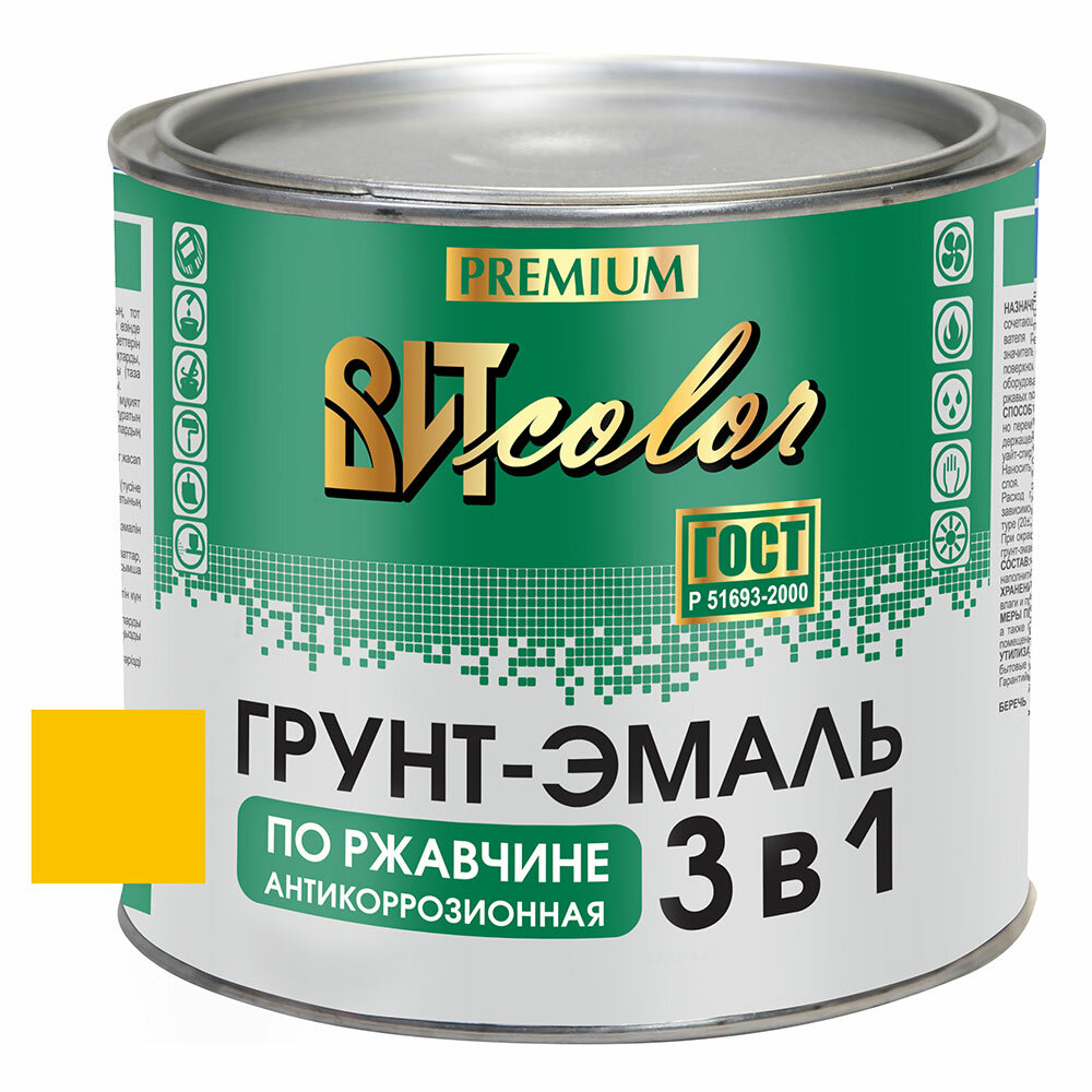Грунт-эмаль премиум по ржавчине 3 в 1 (желтая) 1,8кг."ВИТcolor"