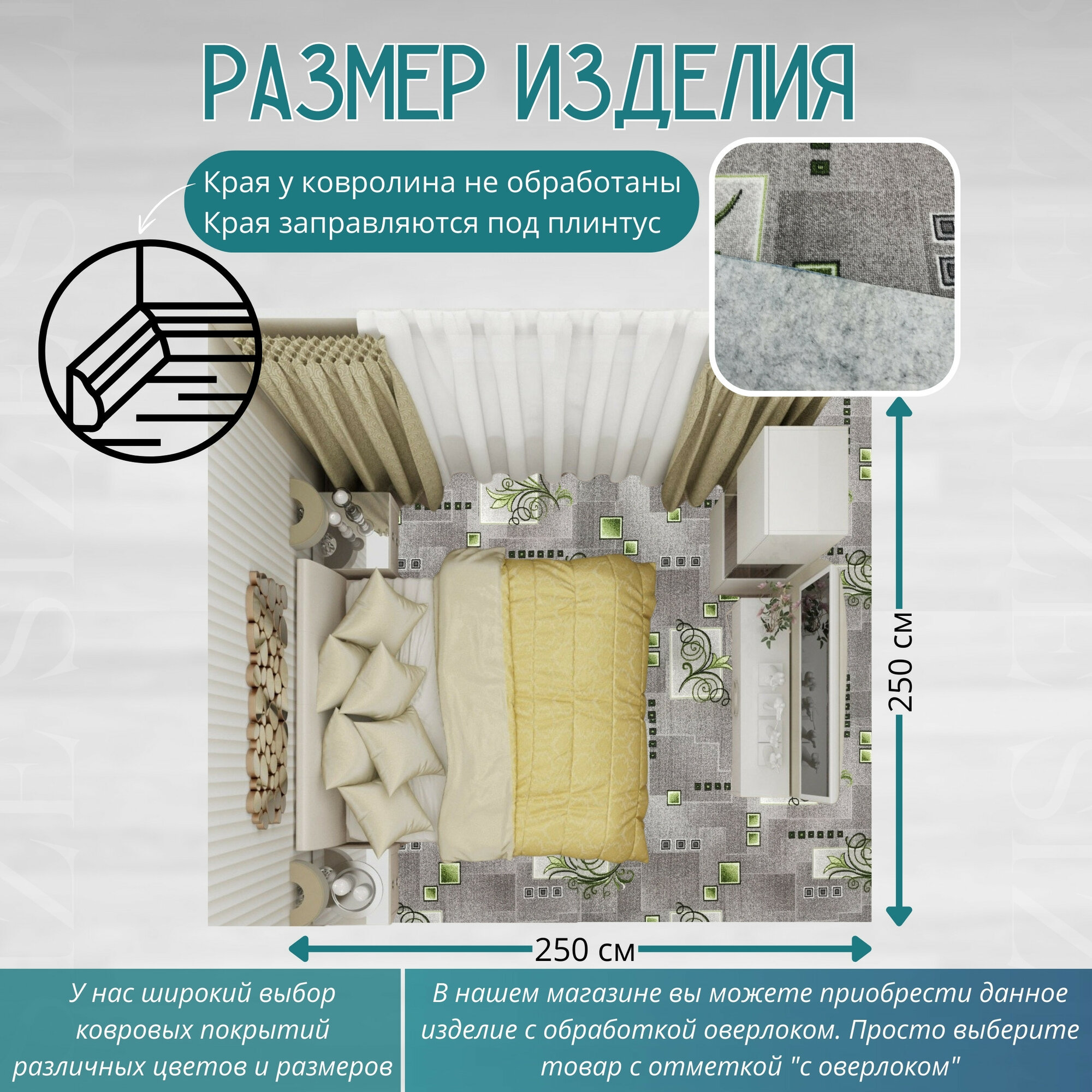 СохранитьКовролин метражом 2,5х2,5 м, без ворса "Зеленый Узор", серый без оверлока интересное: