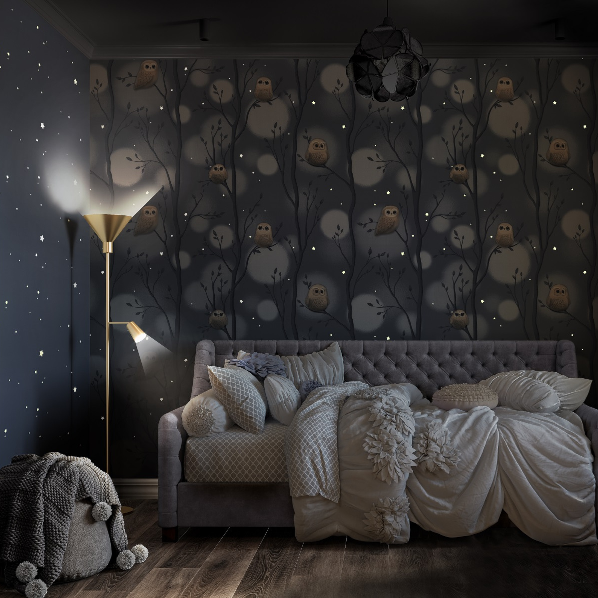 Обои Флизелиновые 1.06 KOF-H, Совы, в детскую, деревья, звездочки, светятся в темноте, F297585