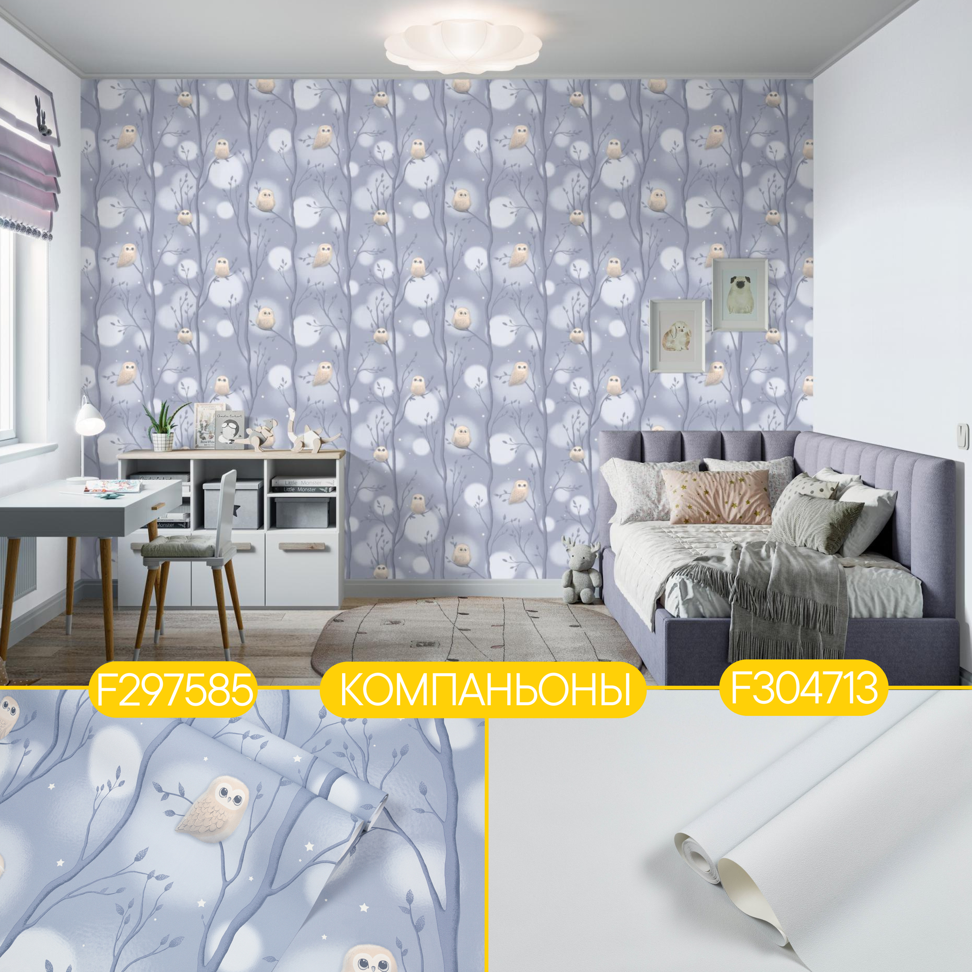 Обои Винил на флизелине KOF-H Совы, В коридор, На кухню, В зал, В детскую, В спальню F297586