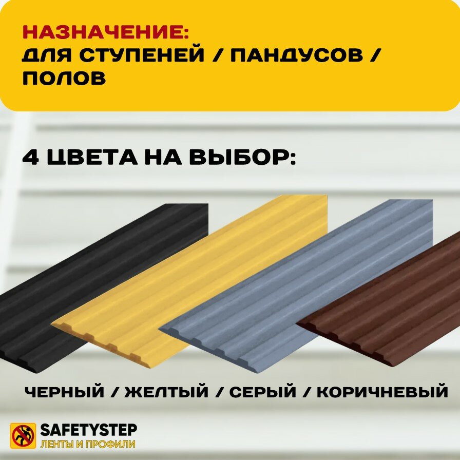 | Дополнительная информация | Самоклеящаяся резиновая тактильная полоса против скольжения, 29 мм х 3 мм, SAFETYSTEP, длина 25 метров |