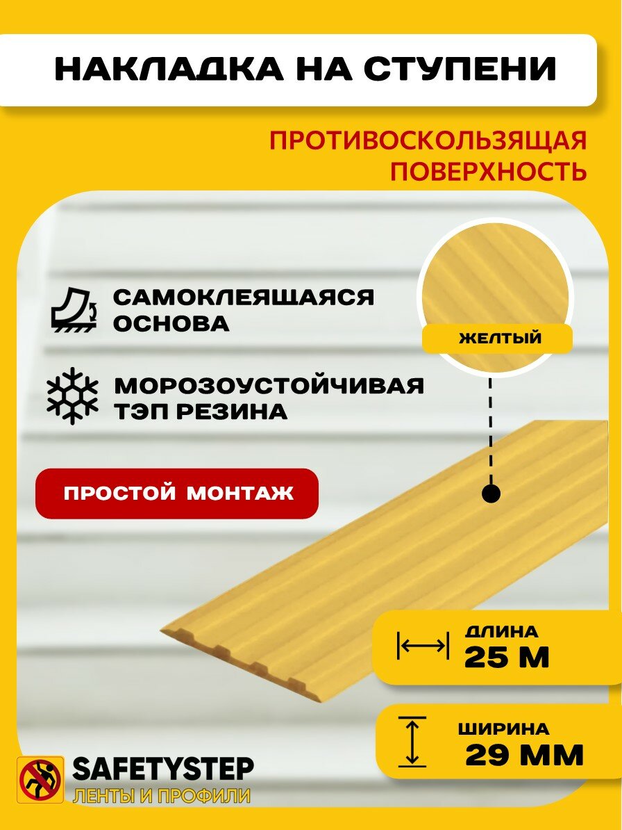 Самоклеящаяся резиновая тактильная полоса против скольжения, 29 мм х 3 мм, SAFETYSTEP, цвет желтый, длина 25 метров интересное: