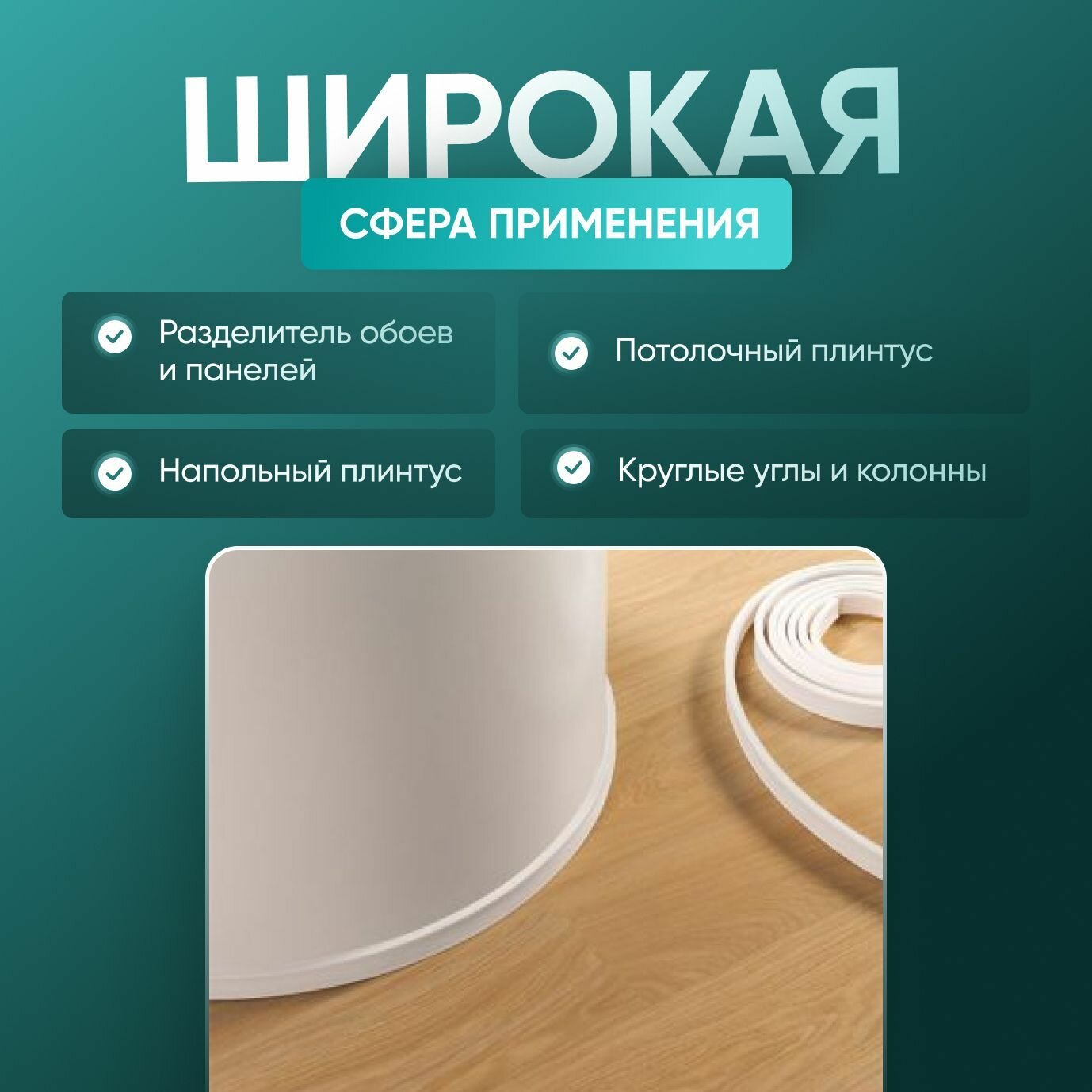 СохранитьПлинтус гибкий напольный самоклеящийся, 3000х95 мм, 1 шт, белый интересное: