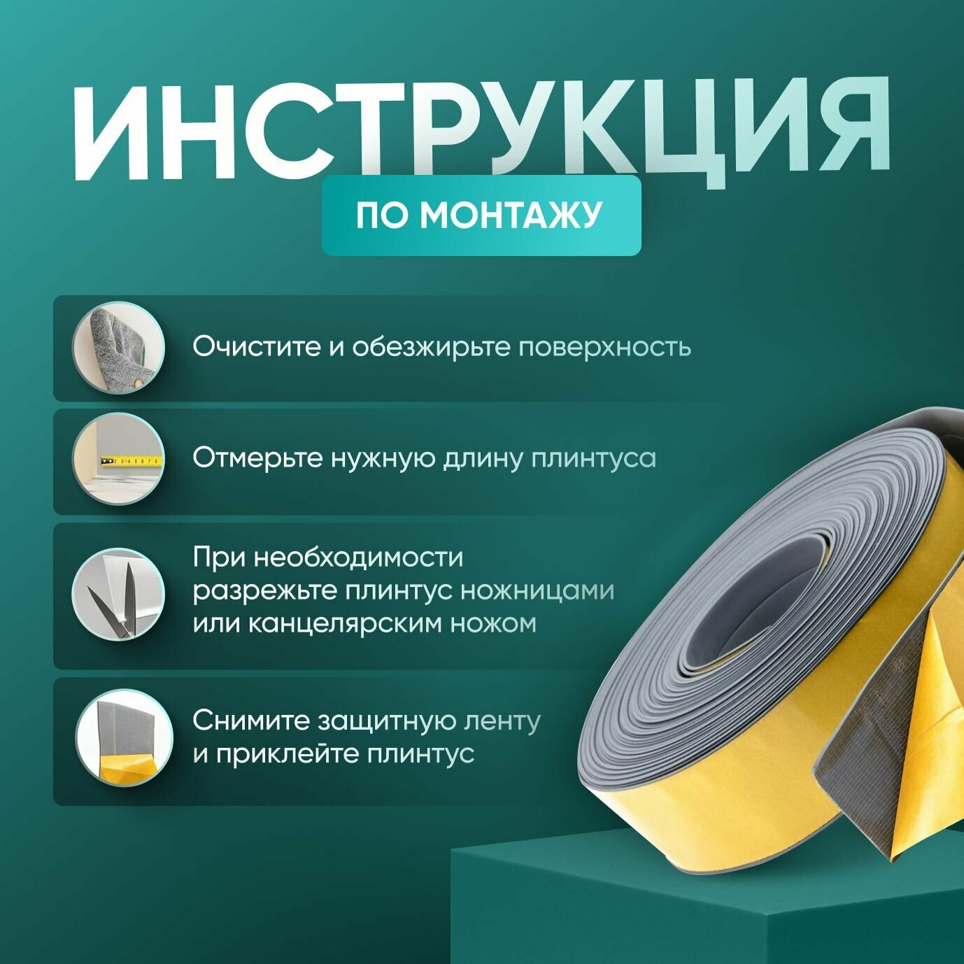 Плинтус гибкий напольный самоклеящийся, 25000х65 мм, 1 шт, серый