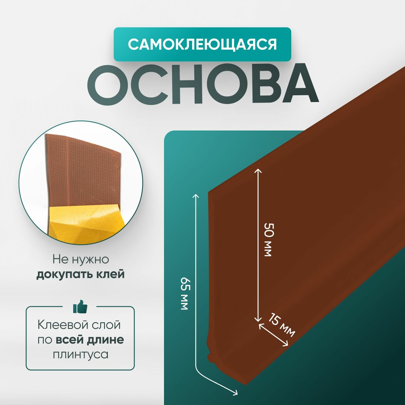 Плинтус гибкий напольный самоклеящийся, 25000х65 мм, 1 шт, коричневый