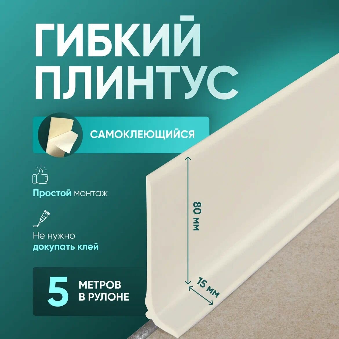 Плинтус гибкий напольный самоклеящийся, 5000х65 мм, 1 шт, слоновая кость