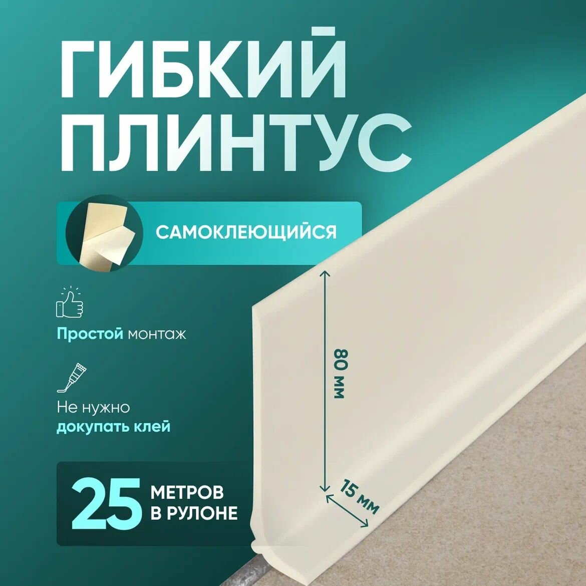 Плинтус гибкий напольный самоклеящийся, 25000х65 мм, 1 шт, слоновая кость