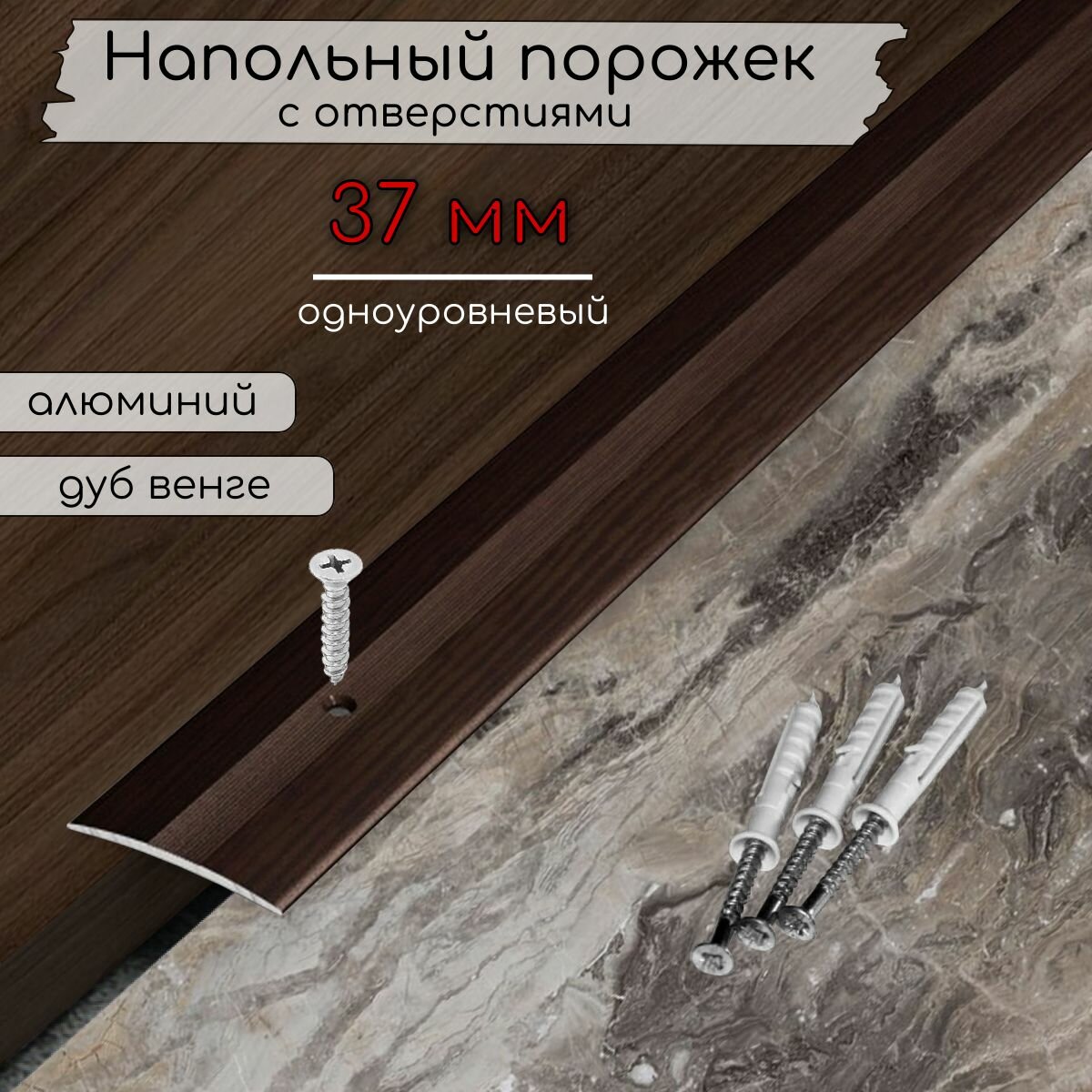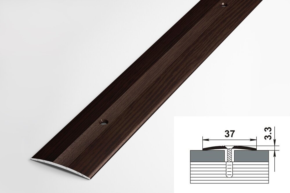Порог для пола алюминиевый 900х37мм, одноуровневый, Дуб мокко, ПС 03.900.061