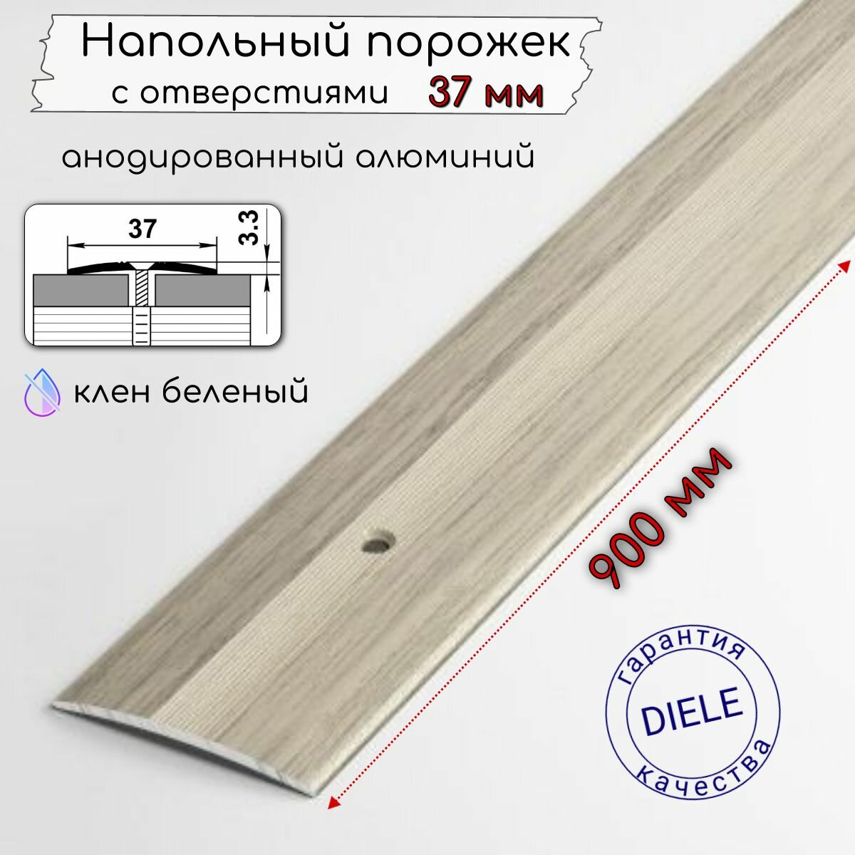 Порожек для пола 900х37мм, одноуровневый, Клён белёный, ПС 03.900.089