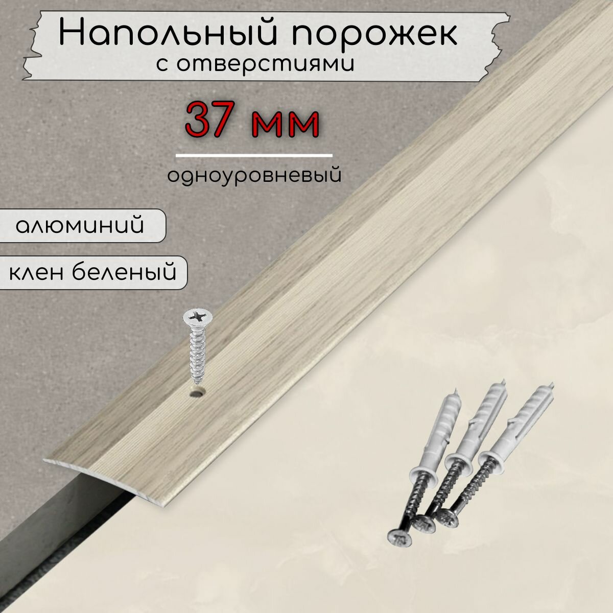 Порог для пола алюминиевый 37 мм Клён северный 054