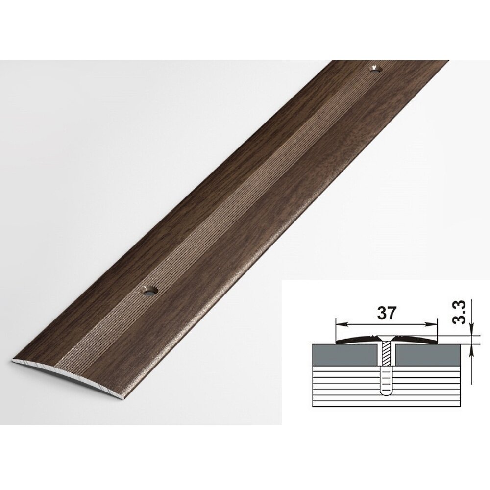 Порог напольный стыкоперекрывающий одноуровневый 37х3 мм, длина 0,9 м, профиль-порожек алюминиевый Лука ПС 03, декор орех 088
