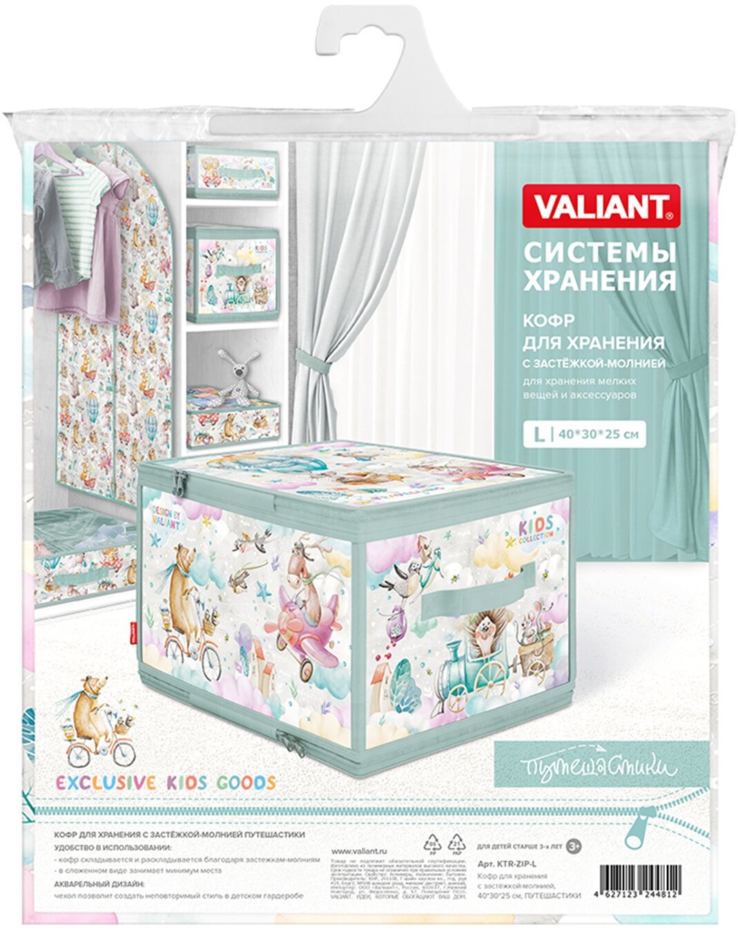 Купить Кофр для хранения Valiant Путешастики, с застёжкой-молнией, 40 x 30 x 25 см