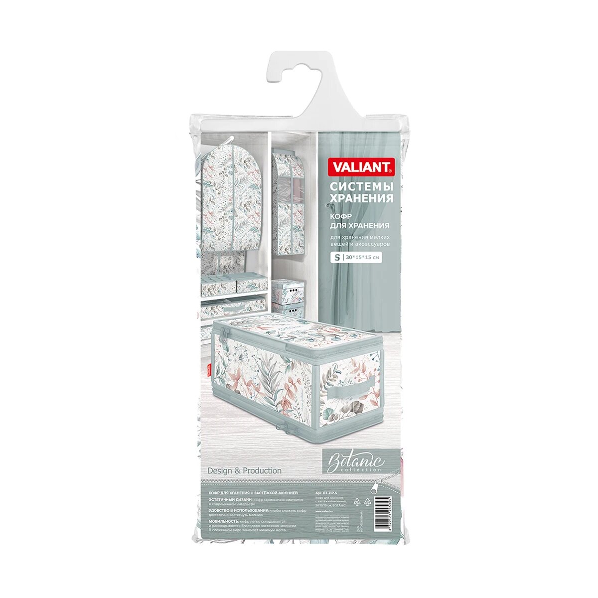 Кофр для хранения Valiant Botanic, с застёжкой-молнией, 30 x 15 x 15 см интересное: