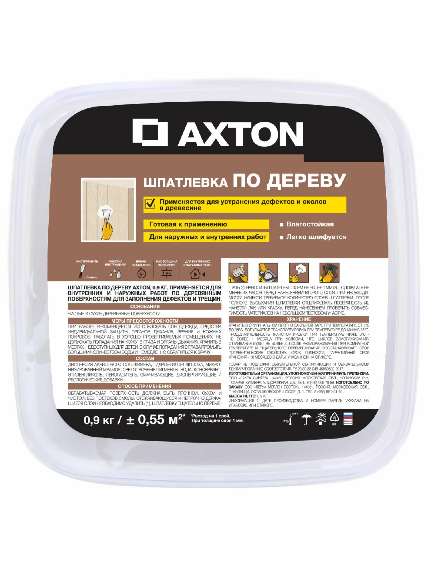 Акстон шпаклёвка для дерева сосна (0,9кг) / AXTON шпатлёвка по дереву для наружных и внутренних работ сосна (0,9кг)