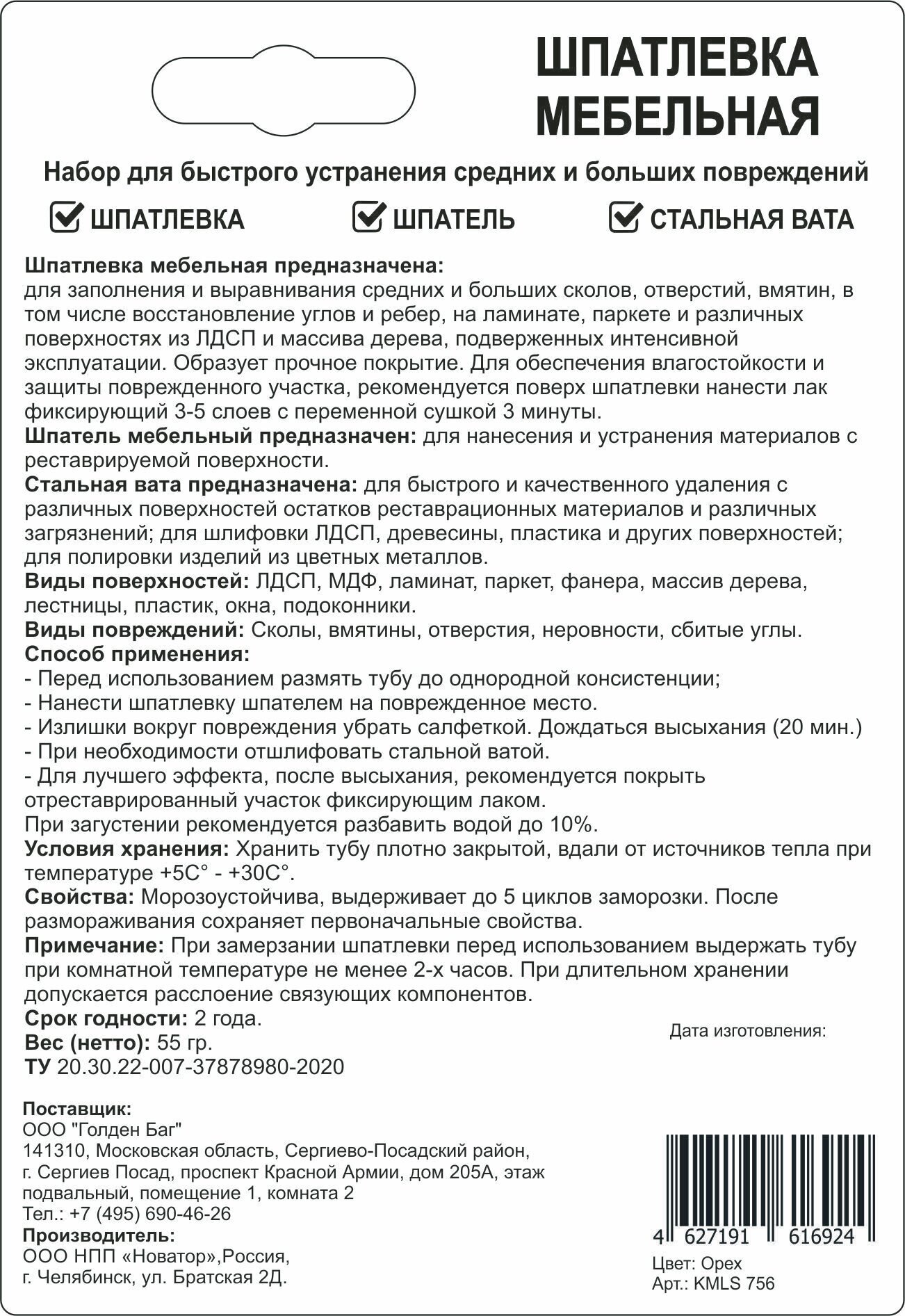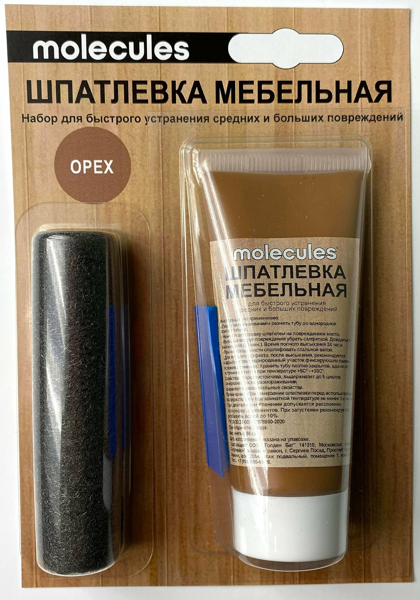 | Дополнительная информация | Шпатлевка мебельная со шпателем Molecules 55 г цвет вишня |