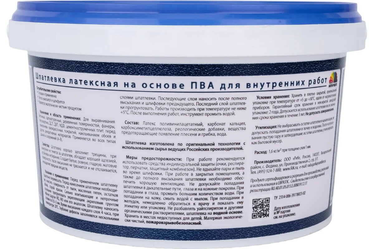 Шпаклевка лаТексная на основе пва 1,5 кг "Магия радуги"
