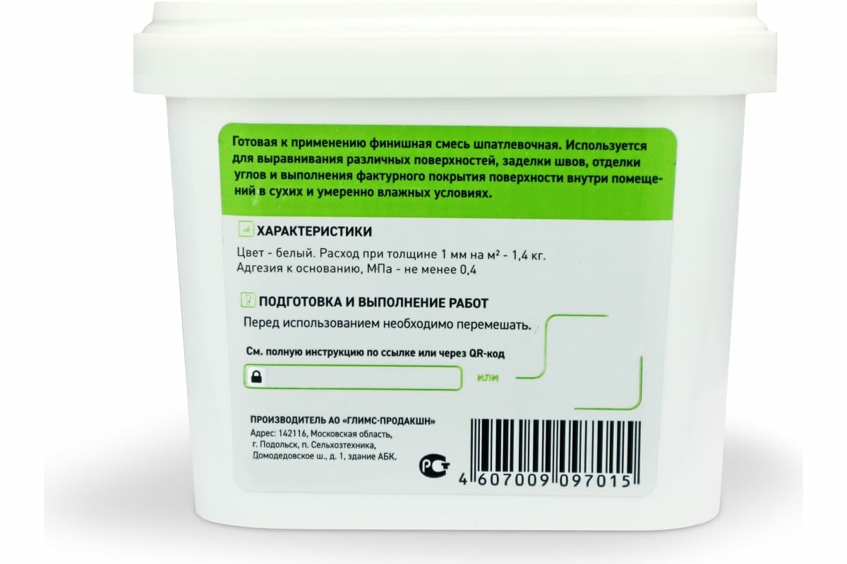 Шпатлевка (шпаклевка) полимерная финишная белая GLIMS HandyPASTA, готовая, 1,3 кг интересное: