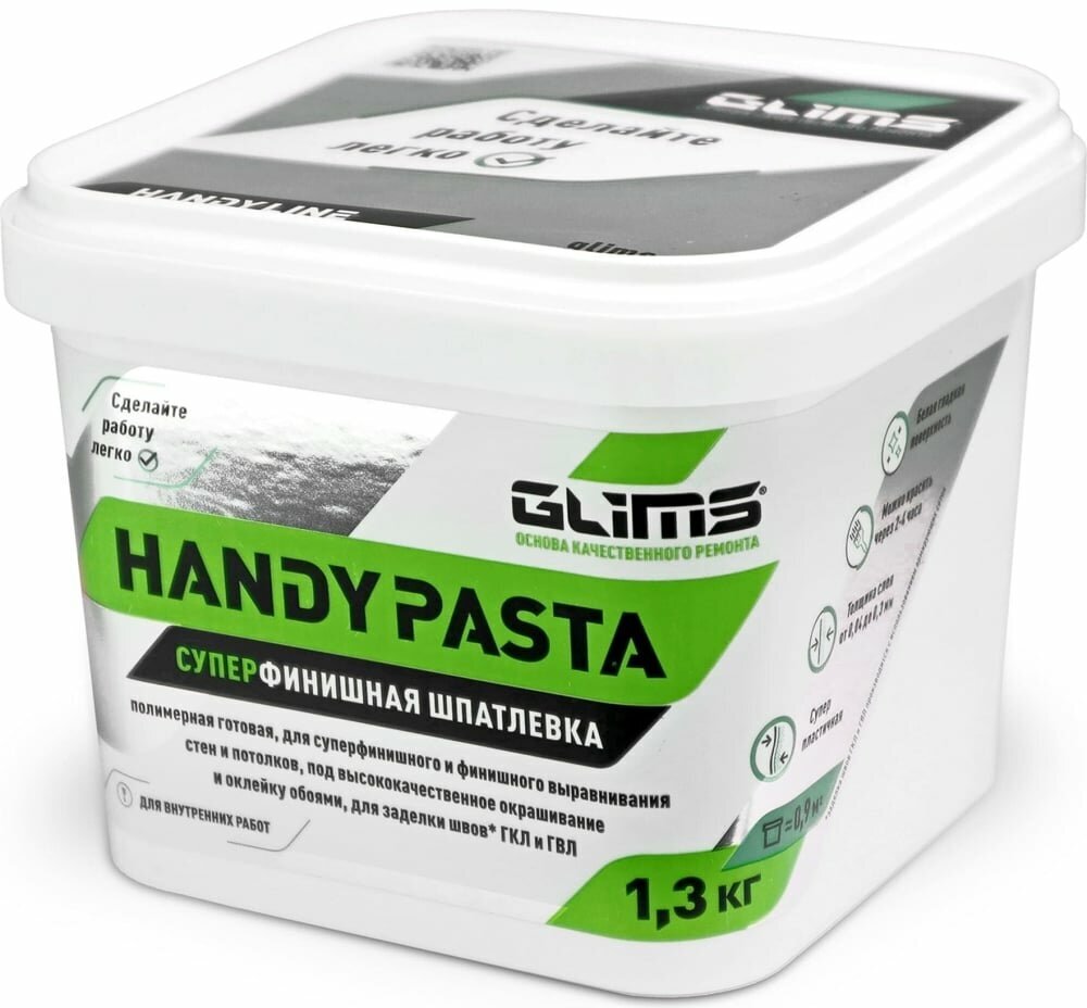 Купить Шпатлевка (шпаклевка) полимерная финишная белая GLIMS HandyPASTA, готовая, 1,3 кг