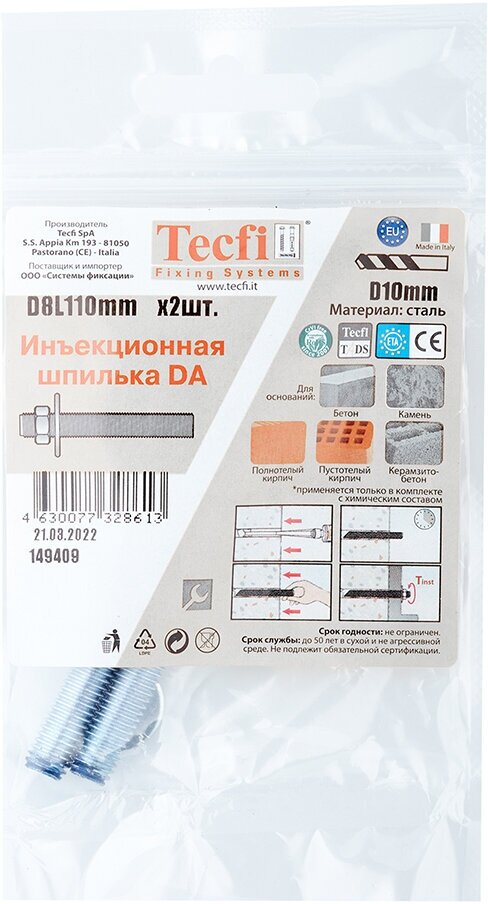 | Комплектация | Инъекционная шпилька Tecfi DA M8 2 шт |