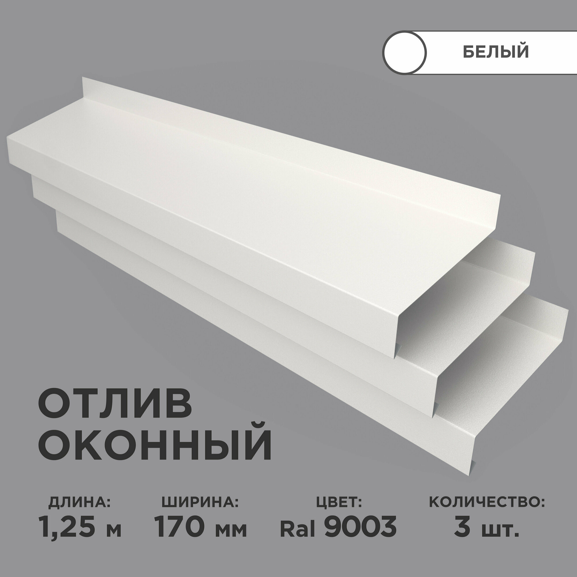 Отлив оконный ширина полки 170мм/ отлив для окна / цвет белый(RAL 9003) Длина 1,25м, 3 штуки в комплекте интересное: