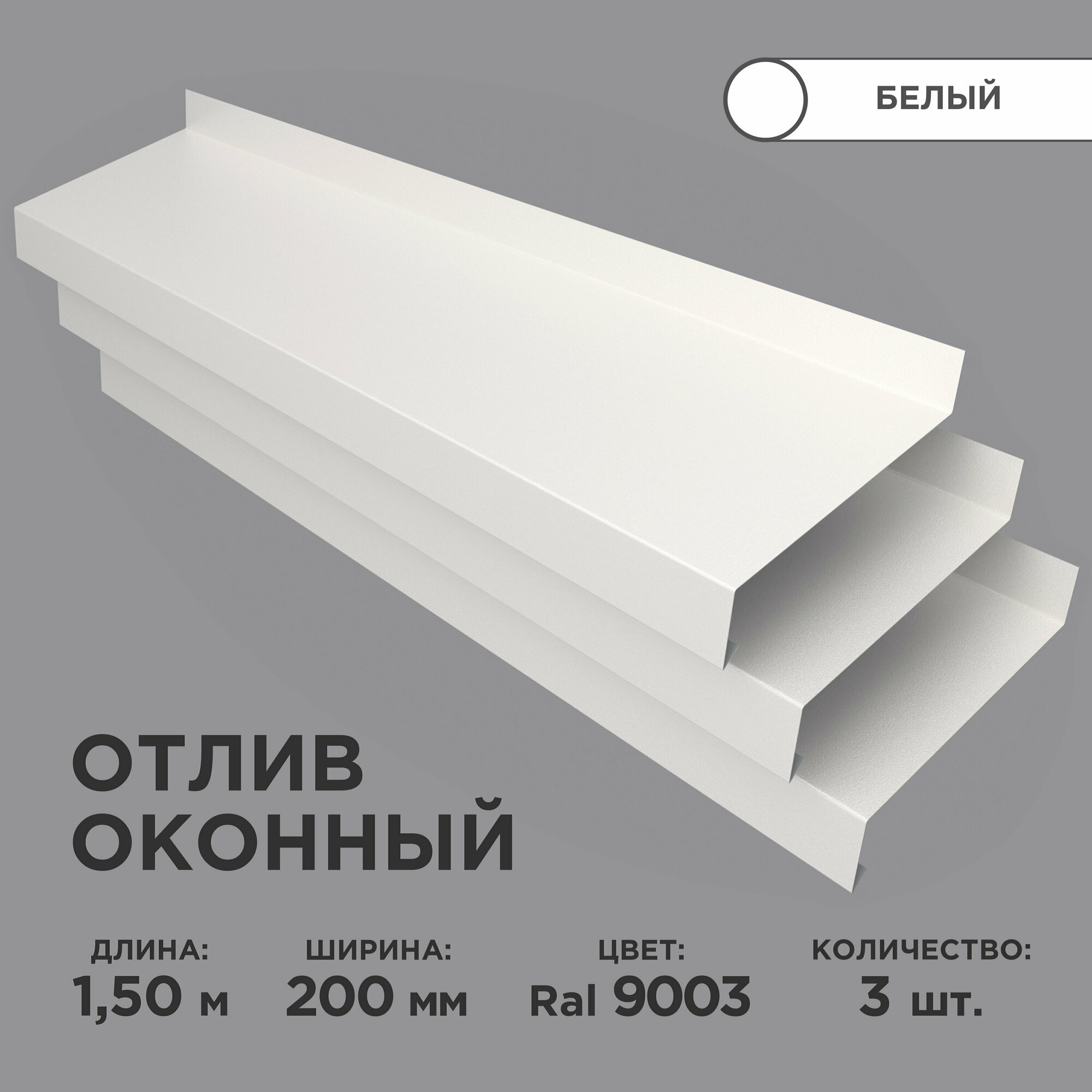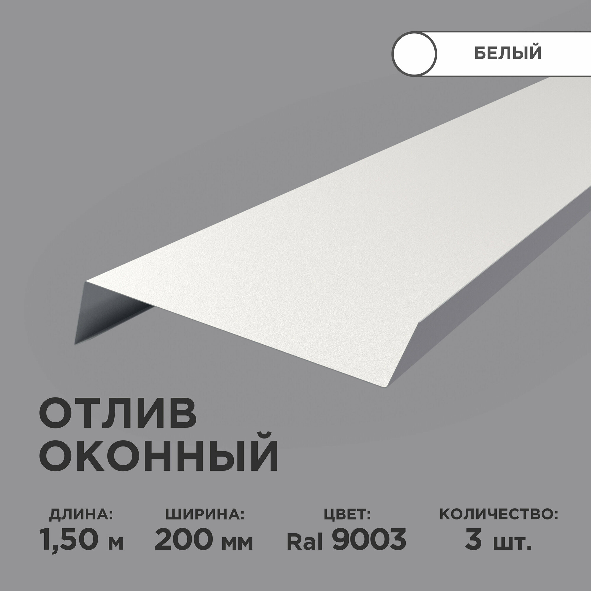 Отлив оконный ширина полки 200мм/ отлив для окна / цвет белый(RAL 9003) Длина 1,5м, 3 штуки в комплекте интересное: