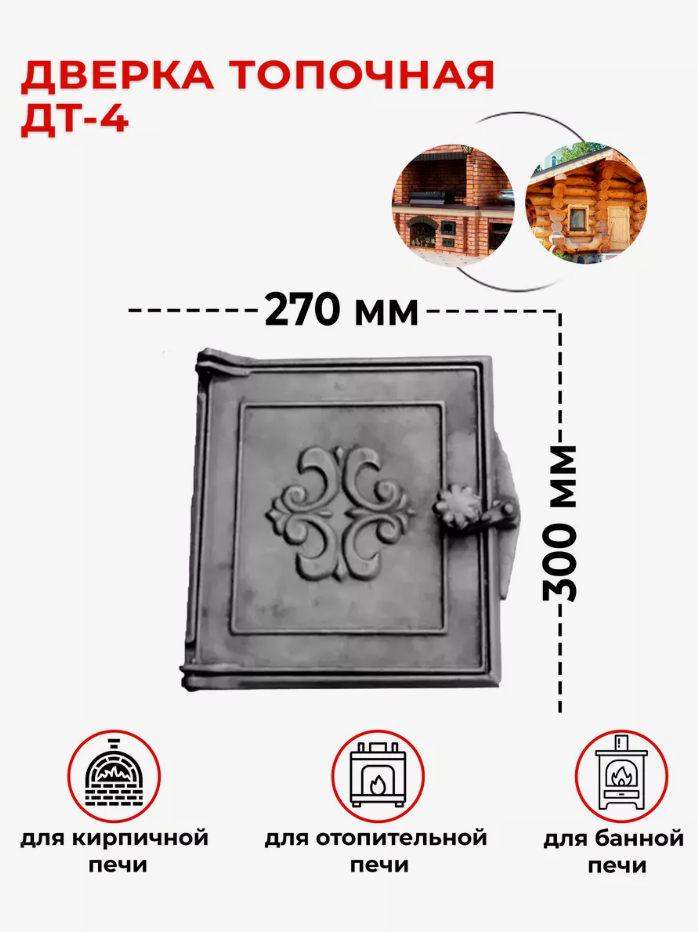 Дверца печная "ДТ-4" 27х30 см, цвет серый, материал чугун, глубина 3,8 см интересное: