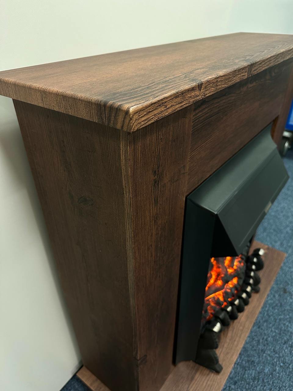 RealFlame Электрокамин NORD_Коричневый с очагом Oregan 3D, напольный камин с обогревом, пульт ДУ