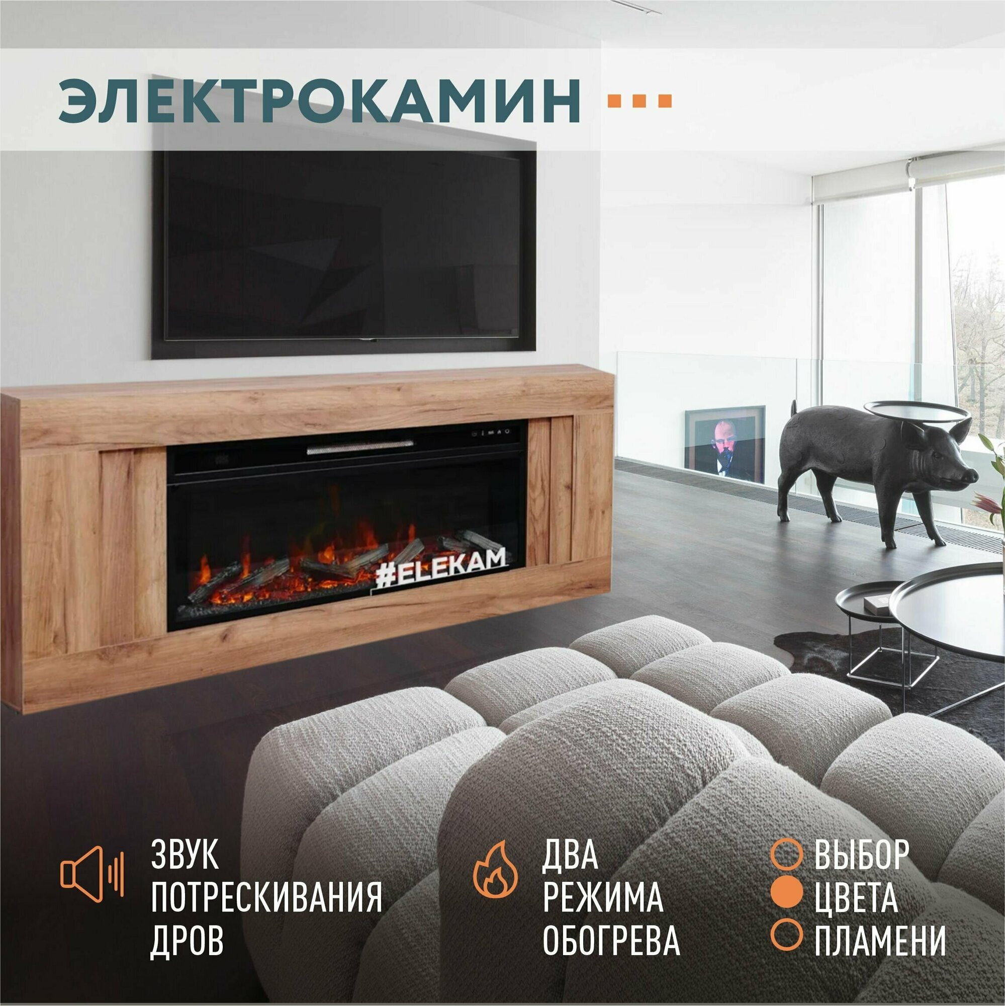 Камин электрический напольный ELEKAM Lindos 38 с очагом и порталом, с пультом, обогревом и имитацией огня (Электрокамин)