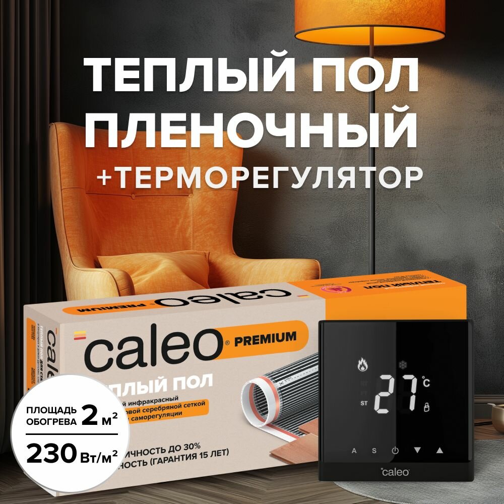 Комплект теплого пленочного инфракрасного пола CALEO PREMIUM 230-0,5-1,0 в комплекте с терморегулятором С732 встраиваемым, цифровым (цвет серебристый)