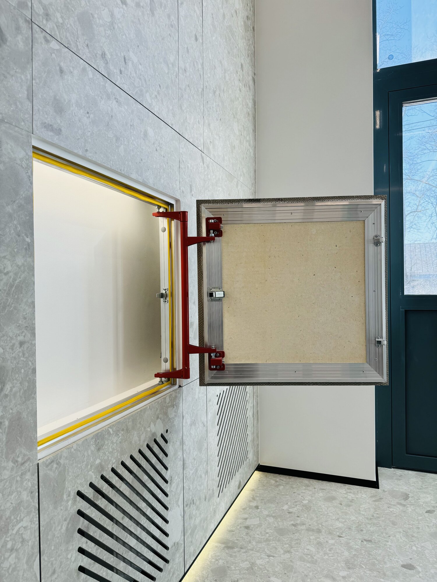 Люк ревизионный под плитку Хаммер Союз 60х90 (ШхВ), алюминиевый, петли на стороне 90