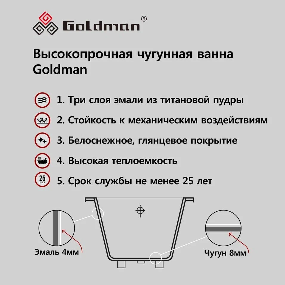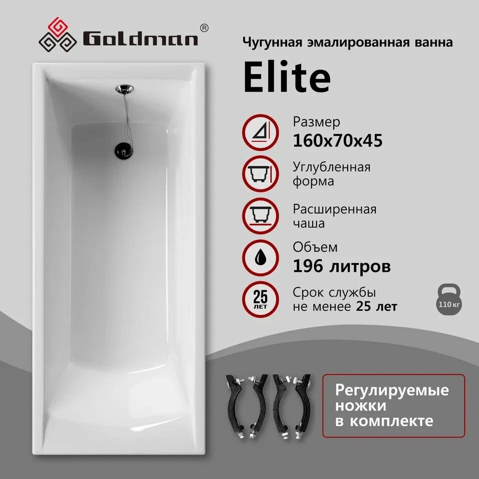 Чугунная ванна Goldman Elite 160x70x45 интересное: