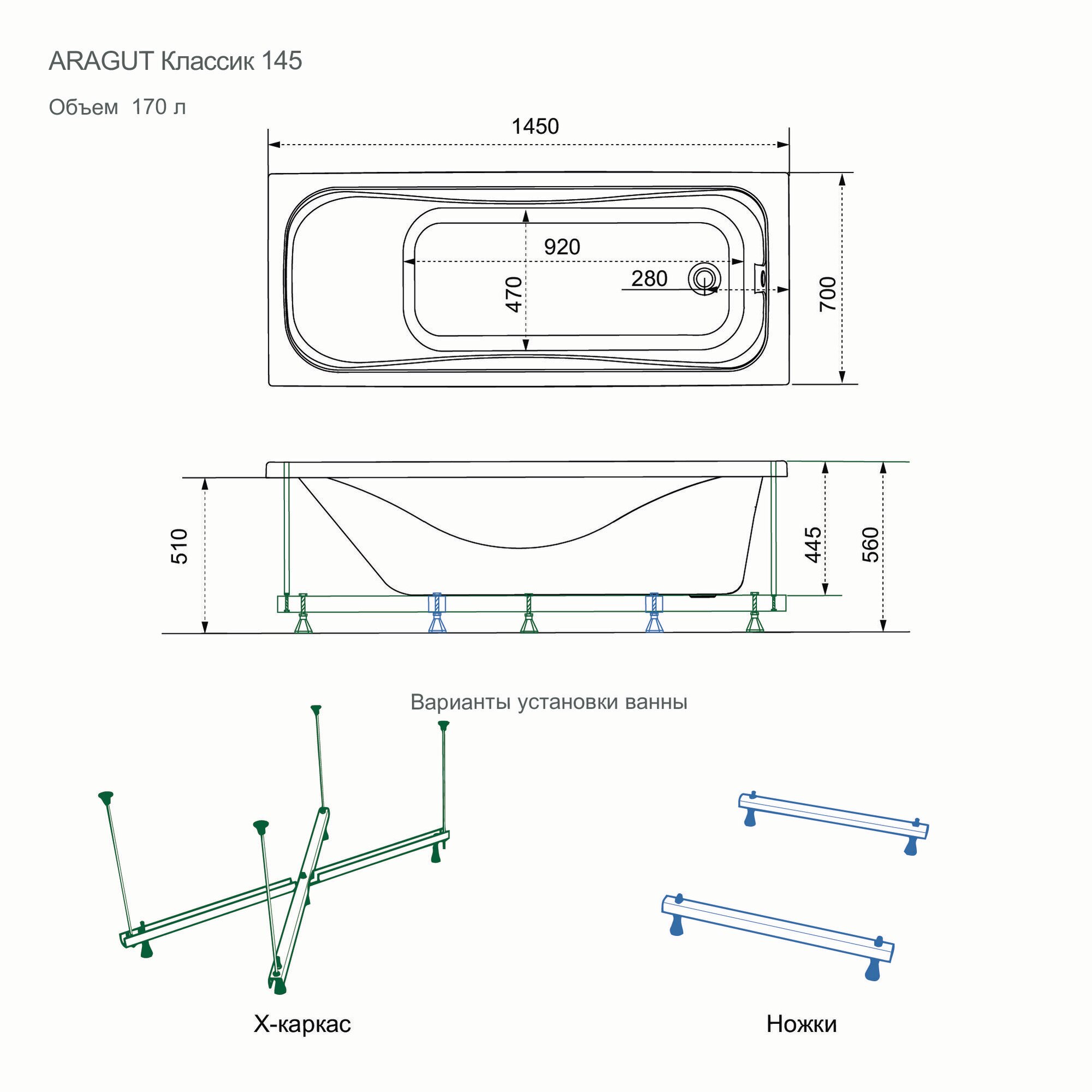 Акриловая ванна ARAGUT Классик 145х70 в комплекте с каркасом интересное:
