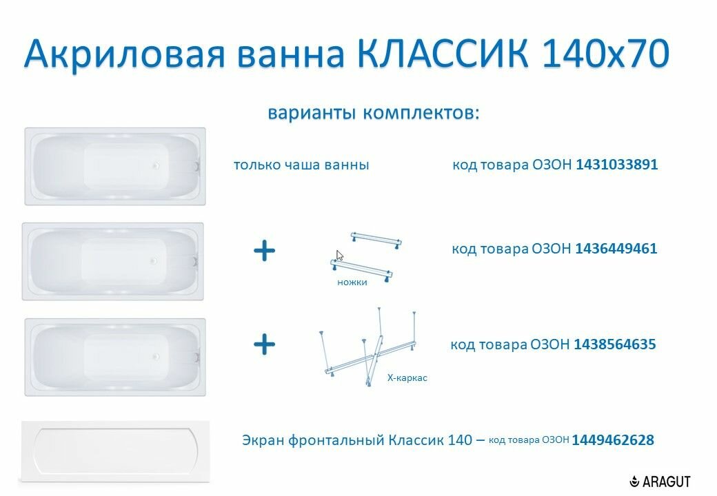 Акриловая ванна ARAGUT Классик 140х70 в комплекте с ножками интересное: