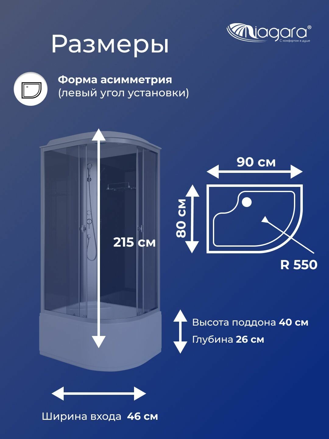 Душевая кабина Niagara Eco E90/80/40L/TN 90х80х215 левая