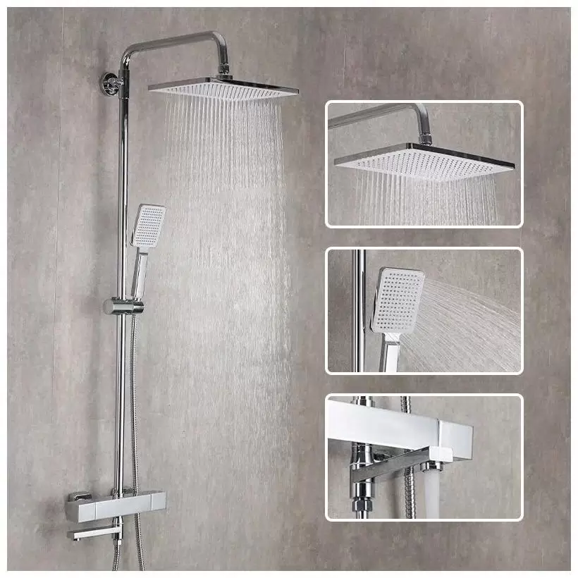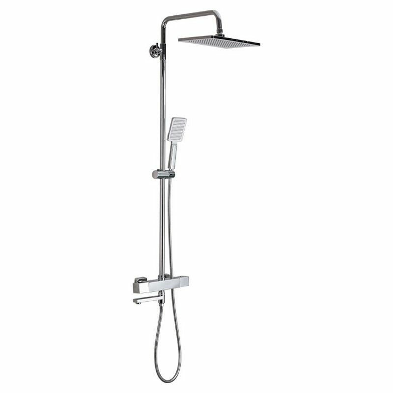 | Плюсы: | Отличная модель душевой системы с термостатическим смесителем. За счет поворачиваемого крана, подходит в компактные душевые. |