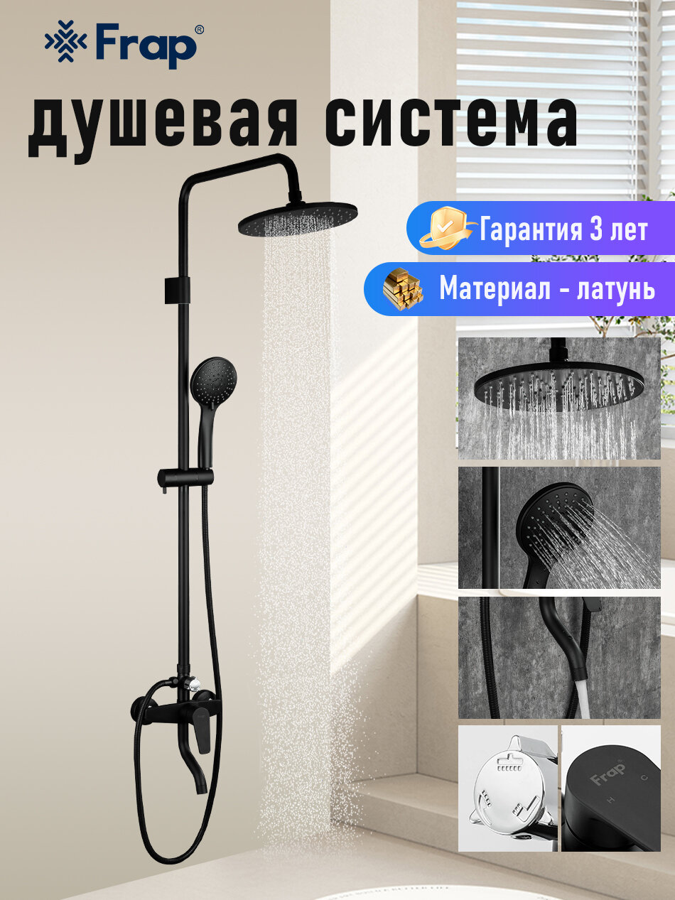 Душевая система черная тропический душ со смесителем Frap F2429 латунь интересное: