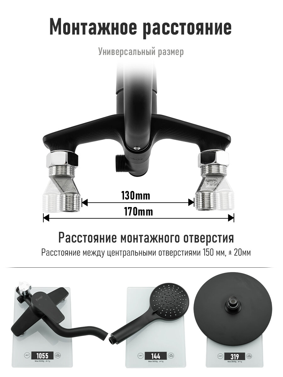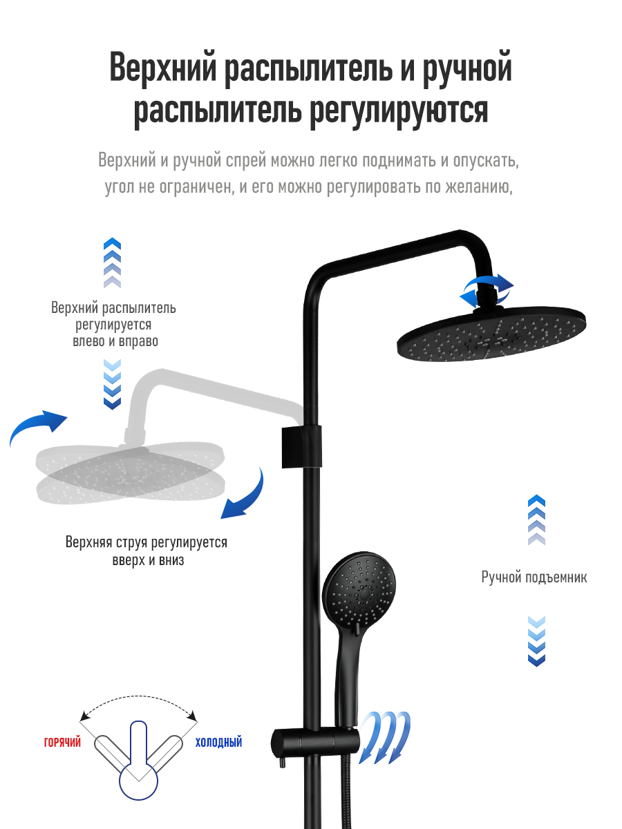 | Особенности | поворотный излив / регулируемый верхний душ / система быстрого монтажа |