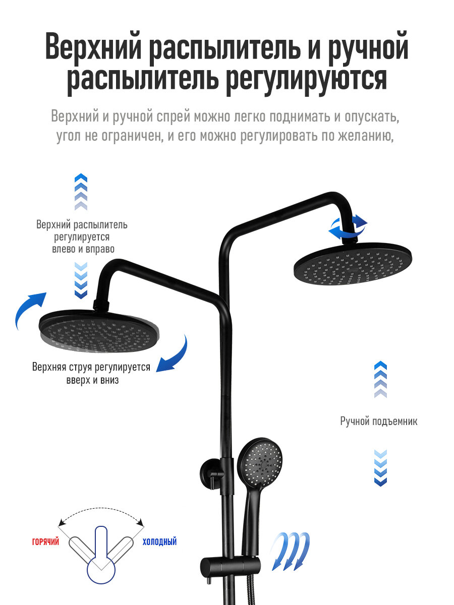 | Комплектация | верхний душ / ручной душ / Смеситель |