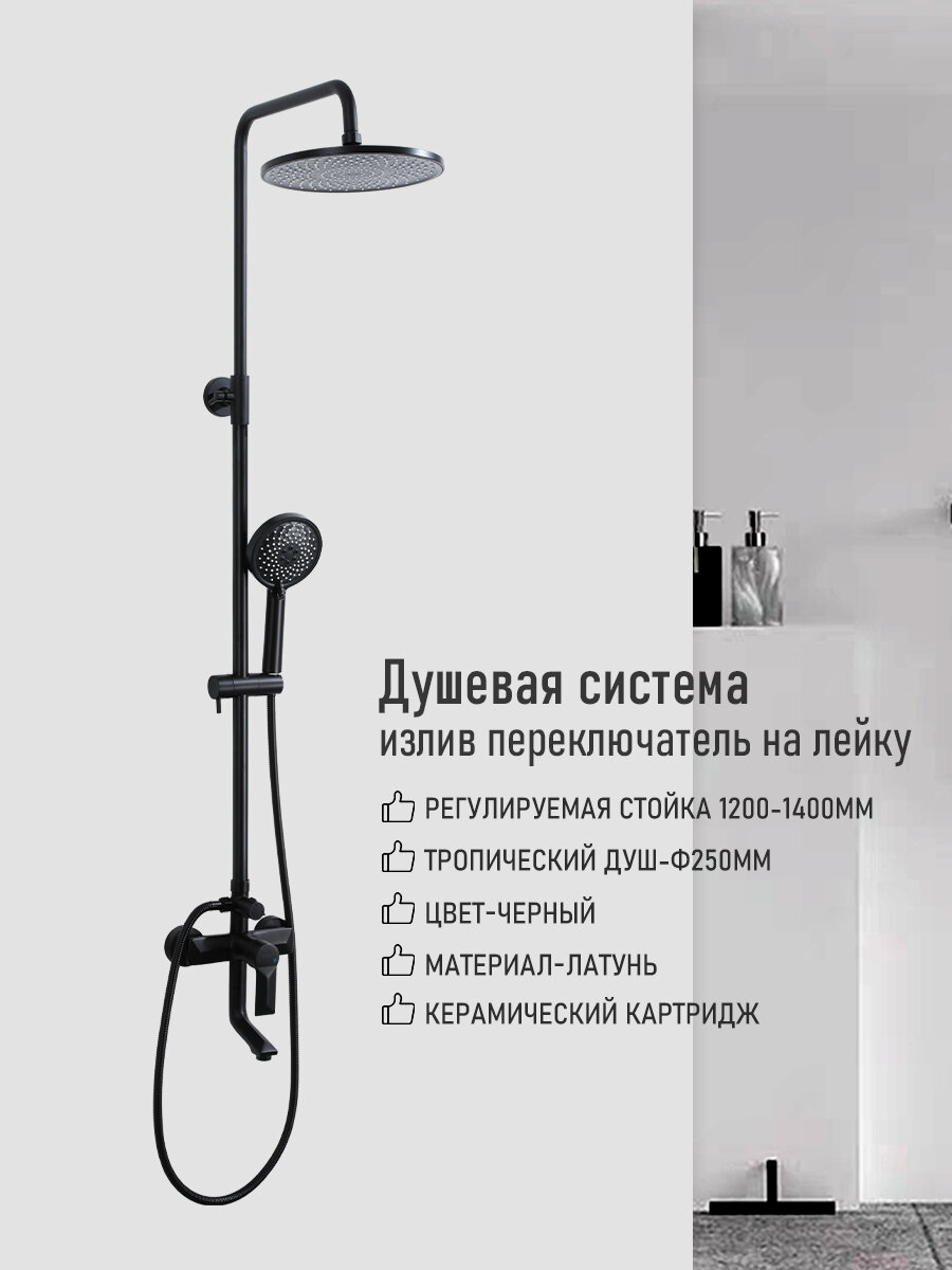 Душевая система с тропическим душем тропический душ со смесителем Frap YF2418-1 черный интересное: